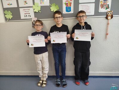 Žiaci 2.B triedy sa zapojili do regionálnej súťaže „Poľovníctvo očami detí“, ktorú vyhlásila Obvodná poľovnícka komora v Humennom. Napriek tomu, že žiaci nezískali 1. miesto, práce si zaslúžili ocenenie, ktoré prišla odovzdať v zastúpení Slovenskej poľovníckej komory Ing. Silvia Perinajová. Žiaci zapojení do súťaže získali diplom, poľovnícky odznak a malé sladkosti, ktoré ich veľmi potešili.