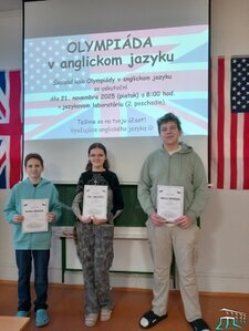 Dňa 21. novembra 2025 sa na našej škole uskutočnilo školské kolo Olympiády v anglickom jazyku. Školského kola Olympiády v anglickom jazyku sa zúčastnilo 33 žiakov 5. až 9. ročníka, ktorí už tradične súťažili v dvoch kategóriách – v kategórii 1A (žiaci 5., 6. a 7. ročníka) a v kategórii 1B (žiaci 8. a 9. ročníka).