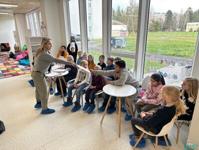 Ďalšou aktivitou eTwinningového projektu bolo učenie v knižnici. Dňa 16.decembra si žiaci 4.C opäť vyskúšali učenie mimo triedy. V knižnici pracovali v trojčlenných skupinkách a ich úlohou bolo vyhľadať informácie ( napr. názvy 4 mesiacov planéty Jupiter), precvičiť spodobovanie spoluhlások, vymyslieť krátku báseň, nájsť prečítané knihy a pod.) Žiaci si navzájom pomáhali, aktívne spolupracovali a preukázali schopnosť efektívnej tímovej práce. Realizované aktivity prispeli k rozvoju čitateľskej gramotnosti, jazykových kompetencií a schopnosti vyhľadávať a spracúvať informácie.